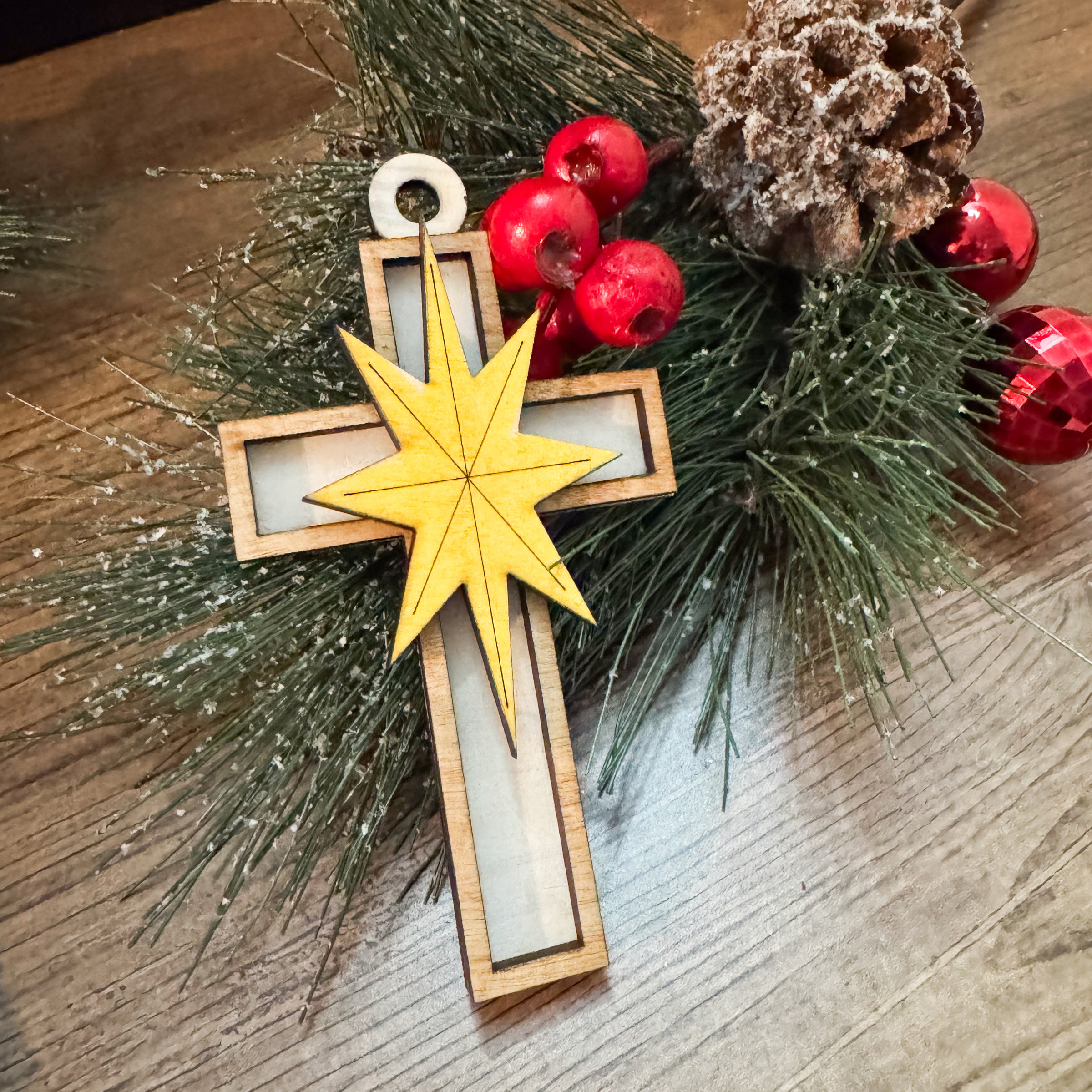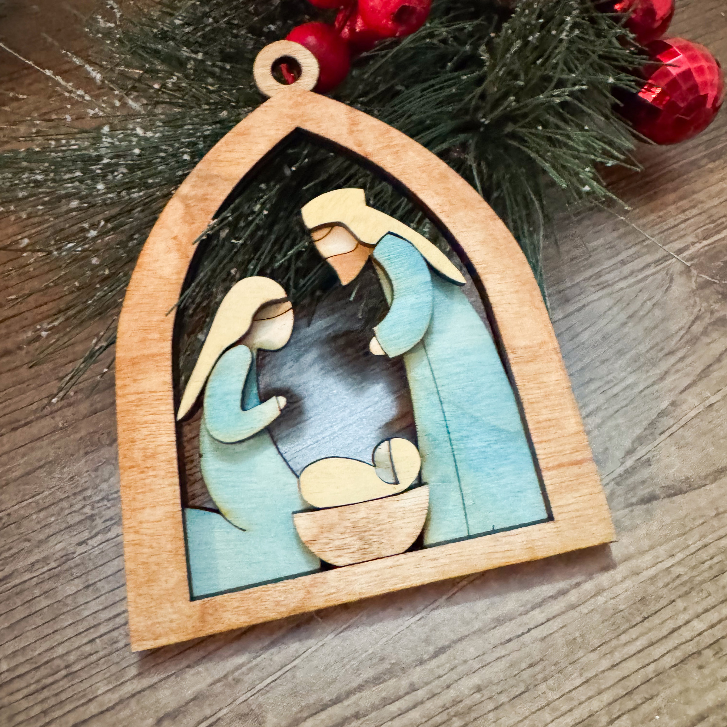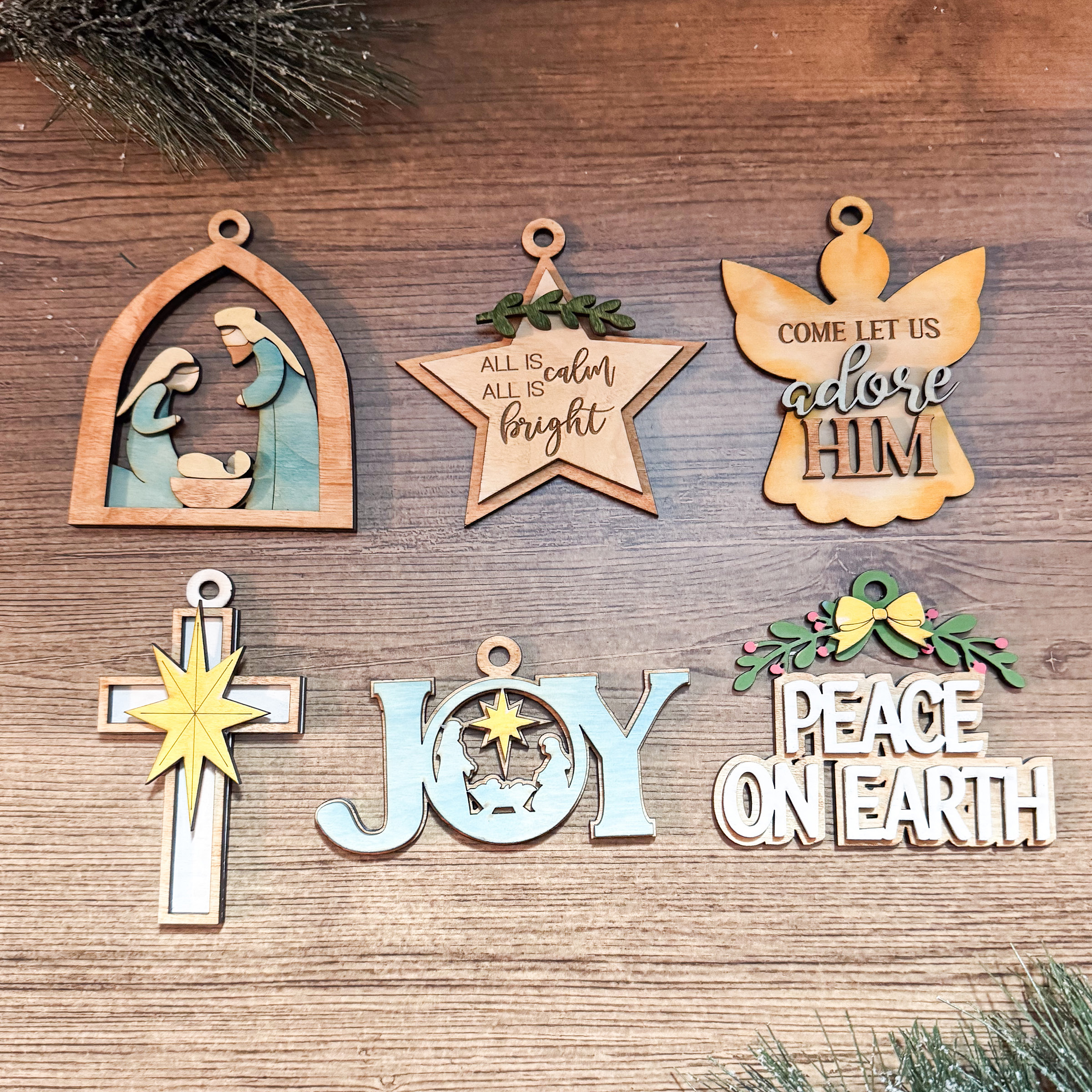 Add meaningful, faith-centered detail to your holiday décor with these handcrafted wooden Christmas ornaments. Each piece is laser-cut from hardwood, hand-painted, and layered to create depth and dimension. Perfect for Christmas trees, garlands, wreaths, gift toppers, or keepsake gifting.