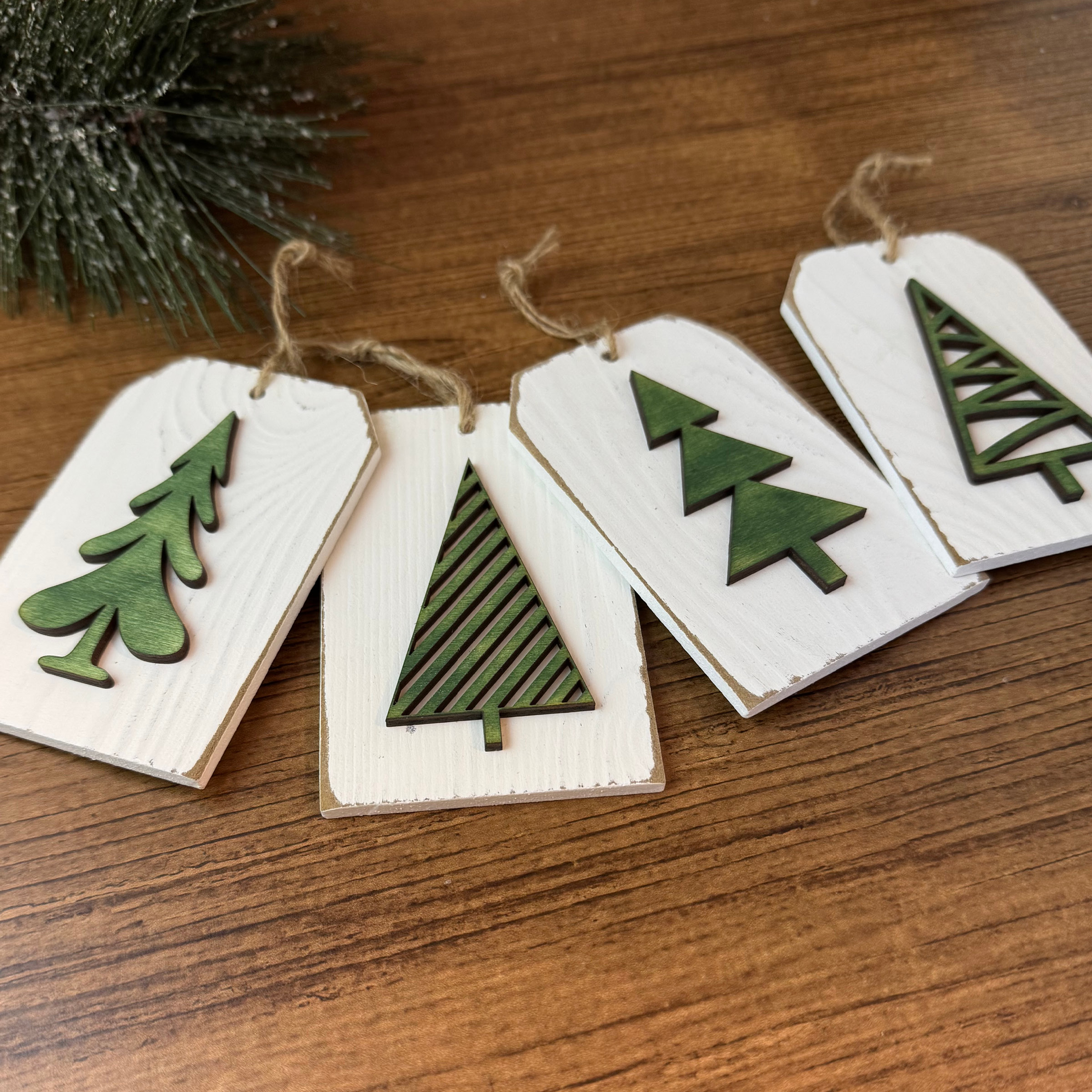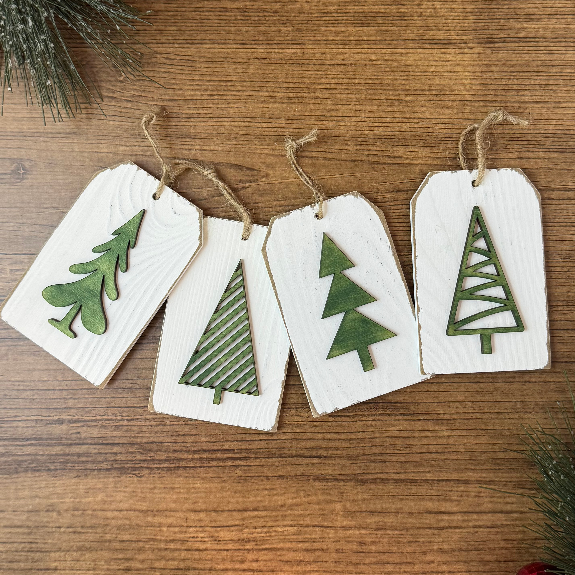 Add a touch of handcrafted warmth to your Christmas tree or gifts with this limited-edition Christmas Tree Tag Set (Group 3). Each tag features a one-of-a-kind green tree layered over a rustic white base, creating a clean yet cozy holiday look.