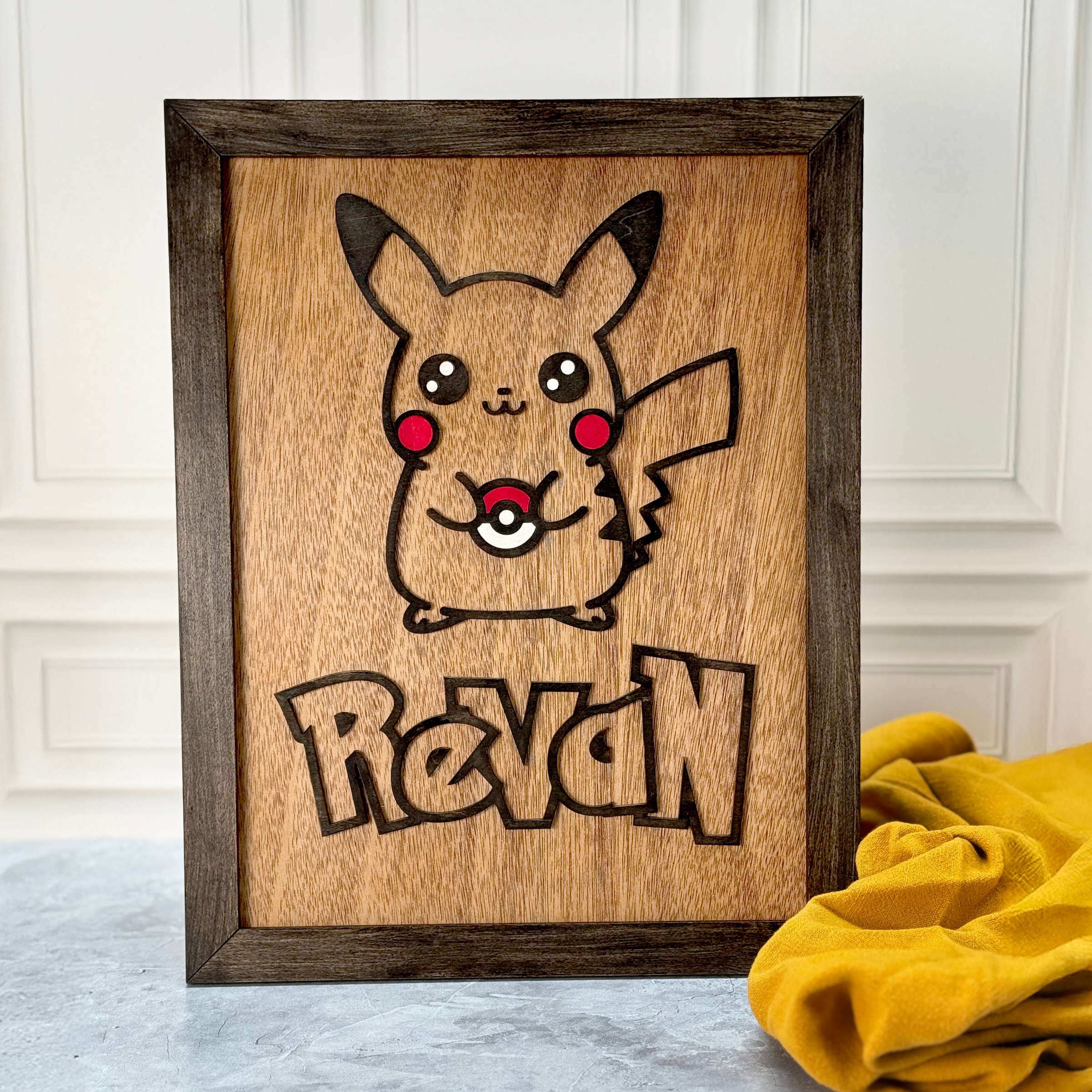 We’ll reach out to finalize the details—name, size, design elements, wood type, and finish.
